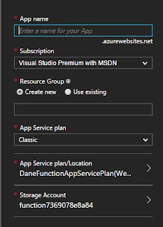 The Portal Blade used for initial creation of the Function App will be familiar to you if you've ever created an App Service app.